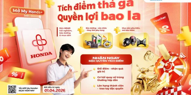 Mở My Honda+, TÍCH ĐIỂM THẢ GA – QUYỀN LỢI BAO LA Ngày 1/4/2026, Honda Việt Nam chính thức ra mắt Chương trình Khách hàng thân thiết Honda trên nền