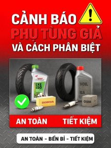Hiện nay trên thị trường xuất hiện nhiều loại phụ tùng, nhớt và linh kiện xe máy giả với mẫu mã giống hàng chính hãng, dễ gây nhầm lẫn. Việc sử dụng phụ tùng kém chất lượng không chỉ làm giảm tuổi thọ xe, mà còn đe dọa trực tiếp đến sự an toàn của chính bạn và gia đình.